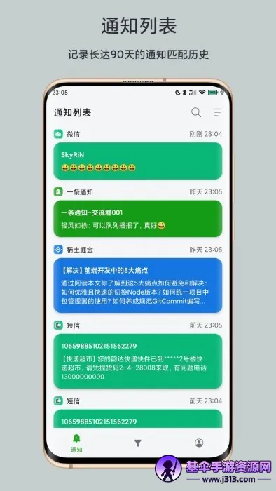 想让消息变成有条理的一条通知吗?有一款超棒的软件能帮到你!它能精准过滤通知,屏蔽无关推送,让你告别信息过载。还会自动聚合同类通知,按优先级分类,让重要通知一目了然。一键标记已读、删除、静音等快捷操作,能迅速提升处理效率,预设快捷回复模板,快速响应消息超方便。工作时,过滤非工作通知,专注重要任务;生活中,睡眠或休息时自动静音,减少看手机频率;驾驶时,仅接收紧急通知,保障行车安全。不管是哪个APP的通知,它都能快速过滤处理,让你随时随地享受清静无扰的手机环境,轻松管理消息,快来试试吧!