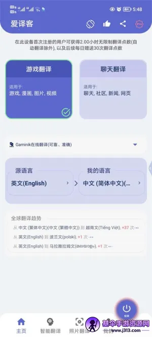 爱译客翻译是一款好用的翻译工具,支持76种语言互译。能识别翻译屏幕、游戏、聊天、漫画、照片中的文字,有实时屏幕翻译、框选精准翻译、图片翻译等功能,操作简单,减少隐私泄露,适合日常跨语言使用。