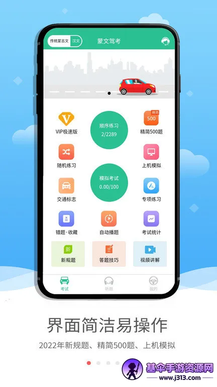 蒙文驾考2026是一款为蒙古族学员提供驾考学习的平台,涵盖科一至科四蒙文题库,支持双语切换。有新交规题库、视频讲解、模拟考试等功能,能错题收集、反复练习,助学员用蒙语顺利通过驾考。