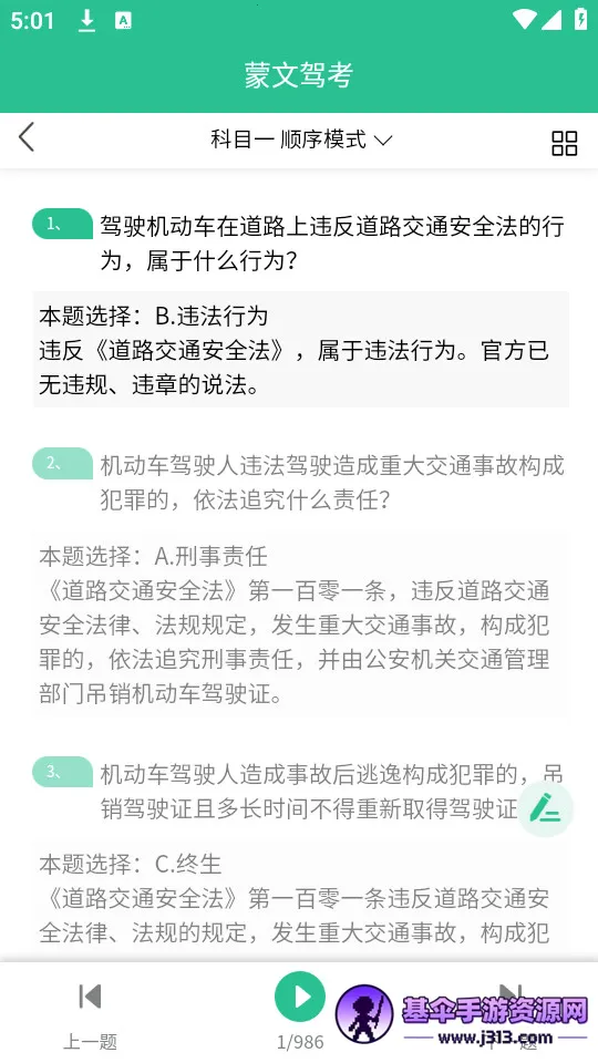 如果你是蒙古族学员,想顺利通过蒙文驾驶员理论考试,那这款蒙文驾考软件绝对适合你!它有超多实用功能。新交规题库精简至500题,是快速理论学习的好帮手。还有视频讲解,涵盖全科视频教程、理论答题技巧、路考注意事项及扣分标准。模拟考试能高度还原考试场景,让你提前适应。名师解题可帮你掌握学习技巧。语音读题能解放眼睛,适合中老年或文盲人士。软件特色也很棒,能总结错误问题针对性练习,还能收藏不懂的问题。顺序练习、章节练习都很贴心,分类清晰,让学习更有针对性。此外,它还能和考友互动聊天,一起备考。蒙汉双语版本可自由切换,内容涵盖多种驾驶证题库,为你提供一站式蒙文驾考题库,随时随地都能方便学习,助力你轻松通过考试!