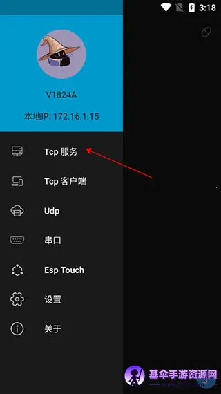2、然后选择需要调试的网络设备(这里以本机tcp服务器有参考)
