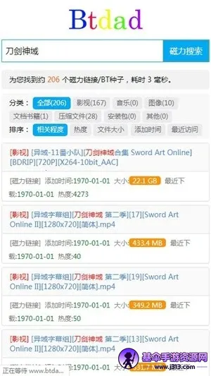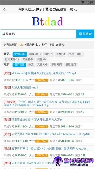 1、打开btdad搜索引擎软件,主界面有众多磁力资源。