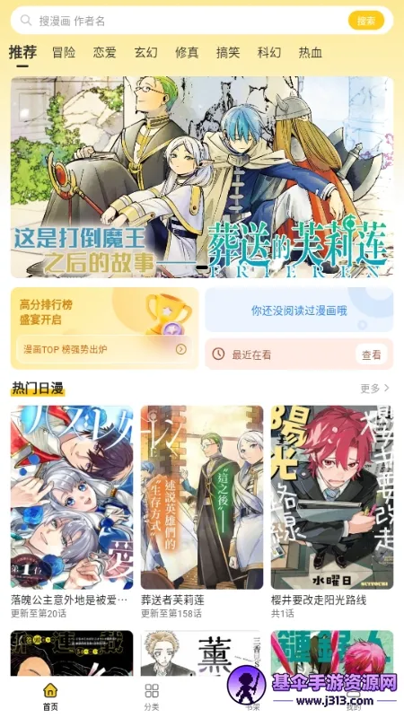 4. 支持通过推荐热门榜分类专区挑选漫画,每个专区不断更新。进入免费阅读页面,可享受全彩高清流畅无广告的沉浸式阅读体验,还支持离线缓存功能,随时查看已缓存漫画,操作简单。