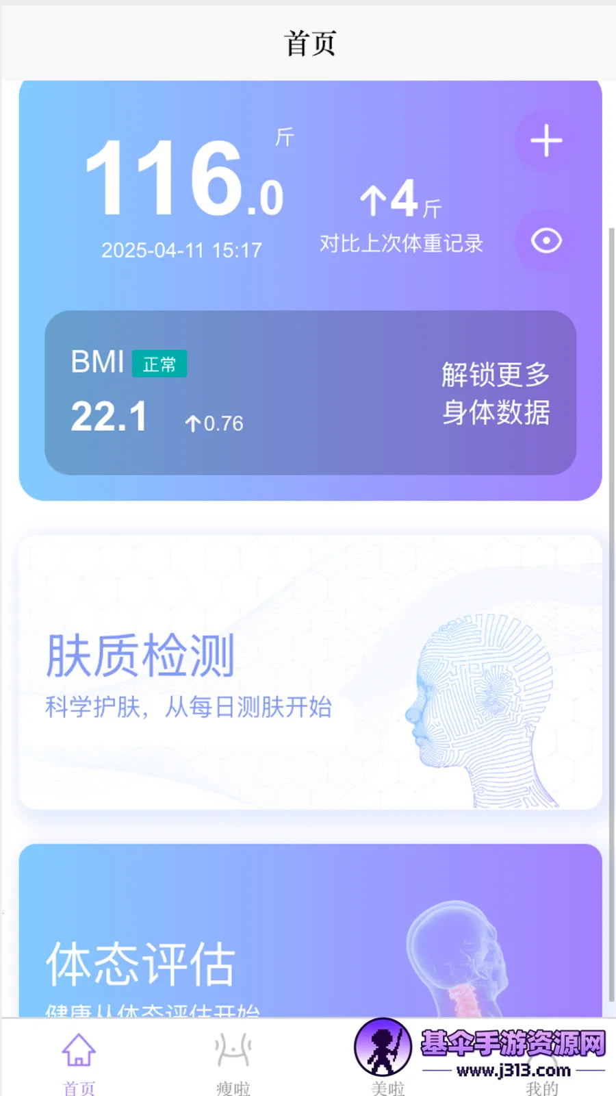 这款专注个人健康管理与形象提升的应用,带来全新体验。操作便捷,界面简洁直观,不同年龄层用户都能快速上手。通过数据可视化,以折线图、饼图等呈现关键指标变化,能轻松发现规律。环境自适应功能强大,优化拍照环境识别算法,在不同光线条件下也能获取稳定测肤结果。它还基于测肤数据提供科学护肤建议,拒绝盲目跟风。不仅构建了检测、方案、记录、反馈的完整链路,提供一站式服务,还有社交属性,能激发管理动力。而且轻量化设计,低耗电运行。无论是想了解皮肤状态,还是进行身材管理,它都能助力,帮助用户更好地管理自身健康与形象,值得尝试。