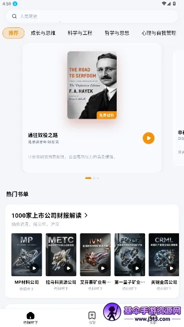 2、在首页的栏目提供了推荐、成长思维与科学工程等分类;