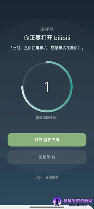 1. 它不会强行阻止你打开应用,而是在你沉迷刷手机时温柔提醒,用呼吸圆引导你进行深呼吸,给你几秒停顿,让你在无意识滑动中突然清醒,做出更好选择。
