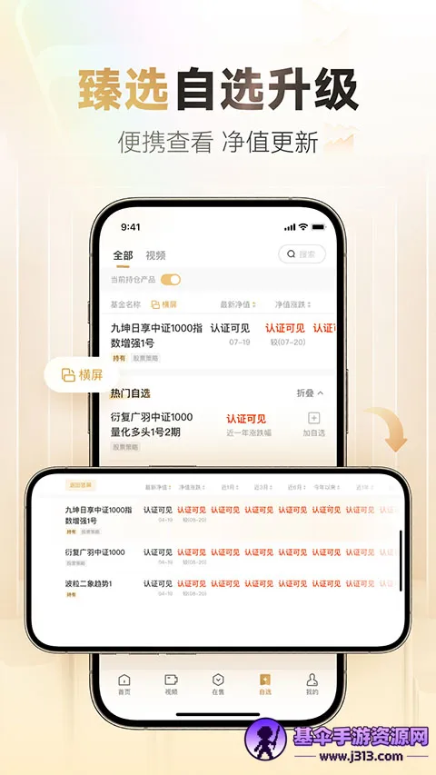 小金掌上私募App专为高净值用户打造,提供一站式资产配置。投前能查净值、找产品、看路演并与大咖交流;投中可获科技体验,线上签约交易便捷;投后资产实时更新,订单详情易查看。其在甄选基金等环节提供贴心服务,打造一站式平台。