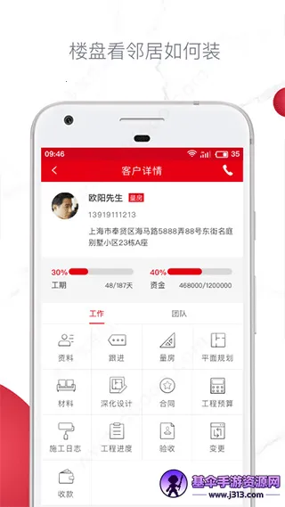 4. 具备项目跟进、客户详情、工程预算、客户搜索、项目动态阅览、工作进展跟踪等实用功能,为工作带来诸多便捷。
