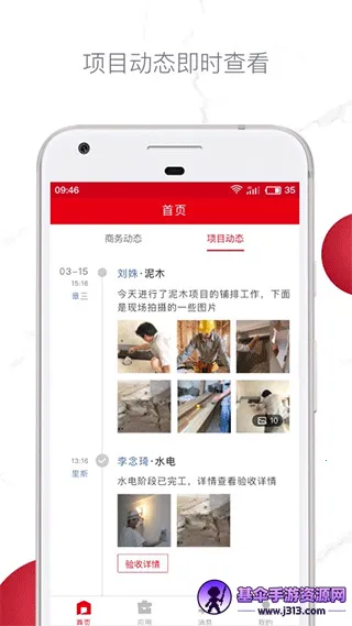 2. 支持随时查看商务动态以及项目动态,能快速看到验收详情、户主信息等,实时关注客户动态与浏览日志记录。
