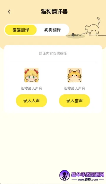 1、智能声音捕捉与趣味翻译:能把你的声音转换成动物语言吸引宠物注意,也能将动物叫声翻译成你能懂的语言,还设有多种声音类型逗宠开心,更有多种猫叫狗叫声及对应中文翻译,助你快速读懂声音含义。