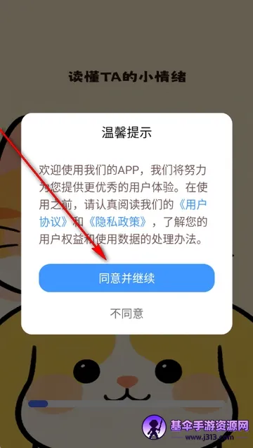 1、打开猫狗翻译工具app,点击同意隐私政策