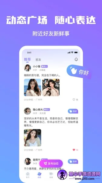 3. 动态广场:用户可以发布生活动态,分享精彩瞬间,吸引志同道合的朋友。