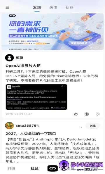 这款平台专为全球科研人员打造。登录注册后,首页文章动态丰富,能自由切换类型阅读,还可切换语言。它优势显著,**实时更新全球科研动态等信息,构建学术信息通道**,为科研人员提供展示成果平台,促进学术交流合作。整合资源与技术打造一站式服务平台,能完成从文献检索到成果传播全过程,还会依用户兴趣和习惯智能推荐相关信息。在这里,可随时搜索论文等,找到同地同校同专业好友交流,各类干货也很齐全。此外,支持文献全文检索等,能辅助科研工作,满足科研人员多方面需求,是科研社交的得力助手。