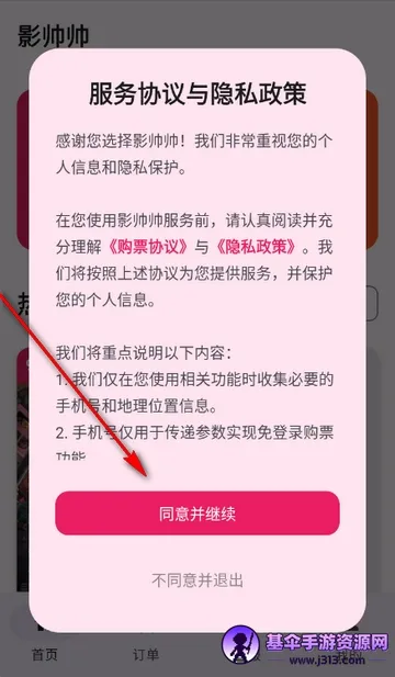 1、打开影帅帅特价电影票app,点击同意隐私政策