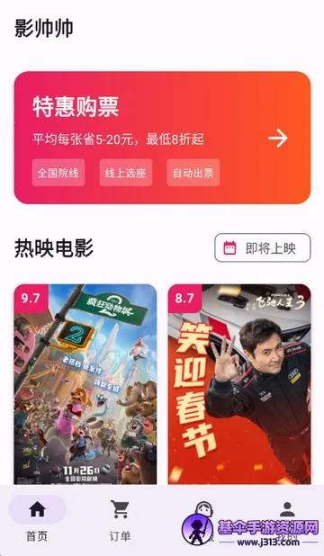 影帅帅特价电影票是一款电影购票软件,有大量特惠资源。能同步热映电影资讯,提供待映推荐与影院信息。选片便捷,可提前锁定座位,查看订单。还有待映推荐、新片预告,覆盖多影院,开放预售,有低价场次与影院推荐。