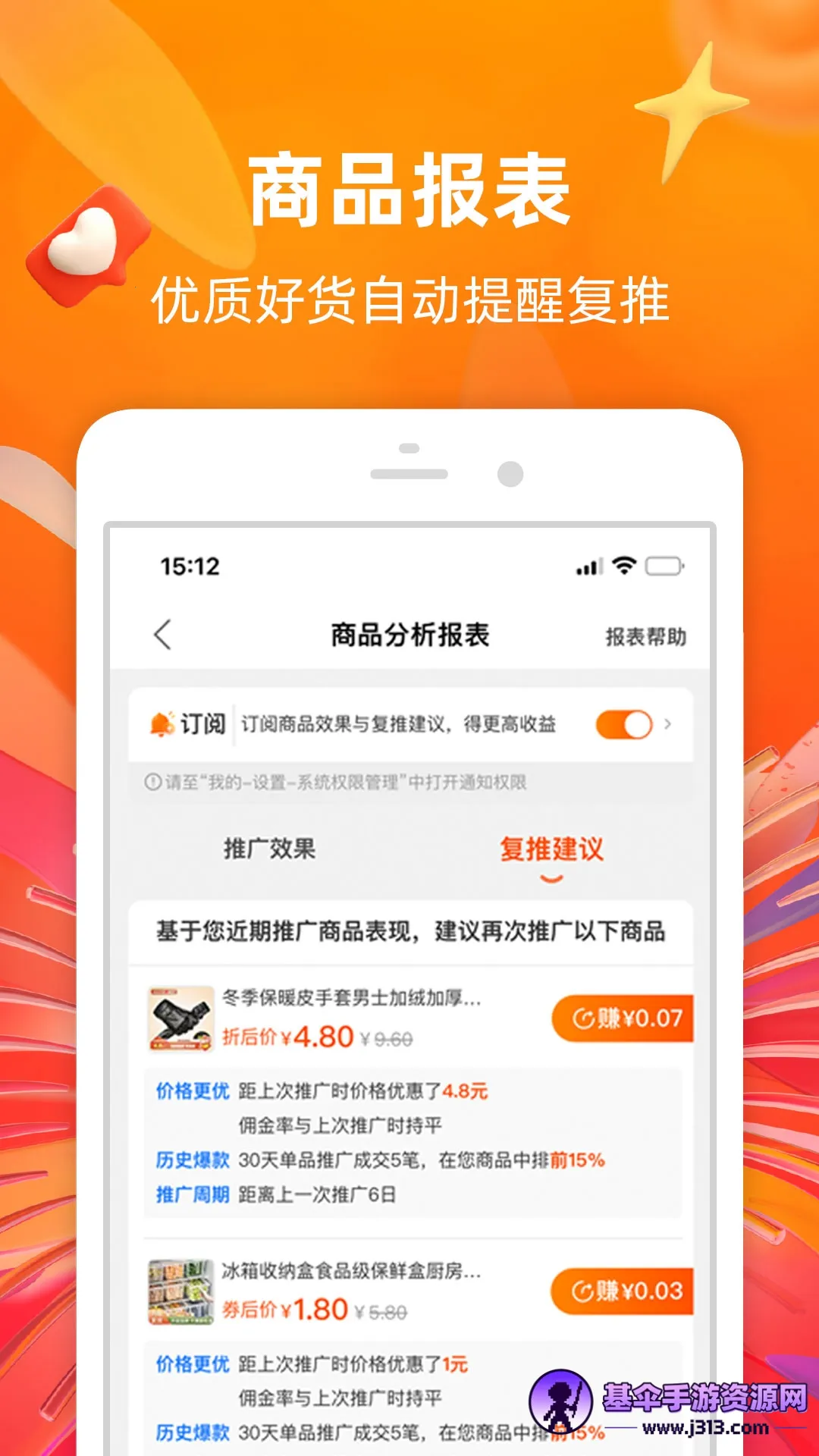 收益数据全掌握:分享成功的商品,可实时看到订单明细,随时随地掌握推广效果,各类推广数据一目了然。