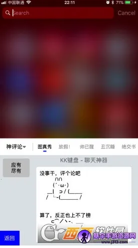 如果你想拥有更丰富有趣的聊天体验,kk键盘是个不错的选择。它无需打字,有丰富自定义文字,能一键快速输入。在聊天时,不管是怼人、表白还是日常交流,都能轻松应对,提升聊天效率。比如和人斗图,它有海量热门emoji,输入文字自动出图,让你轻松成为斗图高手。还有好玩的语音包,各种变声恶搞,聊天场景全覆盖。它还有王者荣耀定制键盘,10000语料一键上屏,横屏自适应,键盘位置大小透明度可调。另外,KK头条能让你刷搞笑段子、网友神评和沙雕表情。有了kk键盘,无论是游戏还是日常聊天,都能给你带来全新且有趣的操作体验,让你的交流更加精彩。