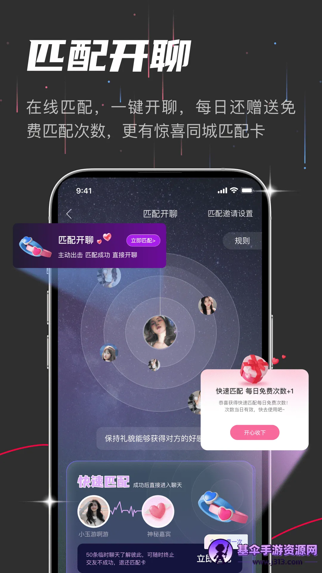 它有很多实用功能。内置搜索栏,能直接搜想认识的人来交友,超方便快捷。还有筛选功能,可按性别、年龄、距离等条件找友人。心动匹配能实时匹配心动对象。评论互动可在线评论动态。新手指引清晰,注册后填资料,就能征友、连麦交流,还能看大家动态。