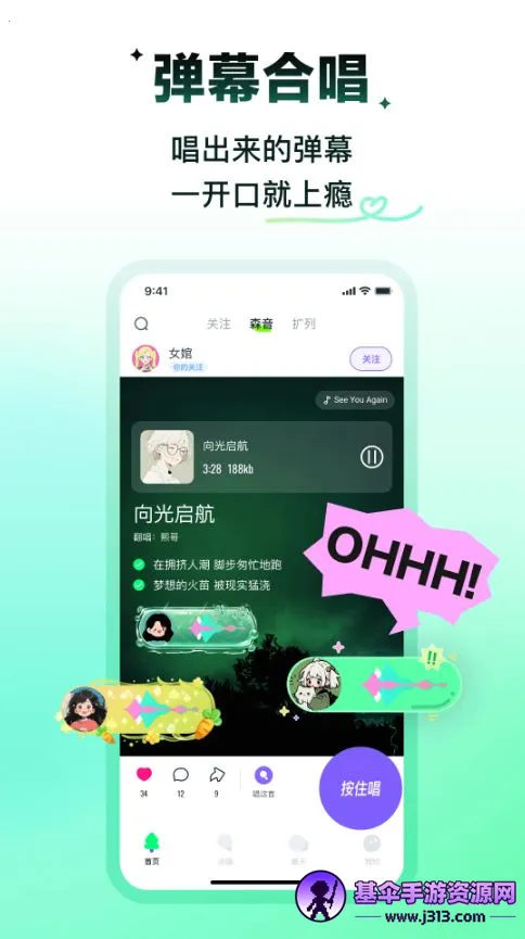趣味社交玩法多:独特的弹幕合唱玩法超有趣,能发射歌声弹幕互动,还可组合成震撼合唱作品。歌房支持实时在线K歌互动,天团功能可加入或创建群组,享受丰富社交体验。