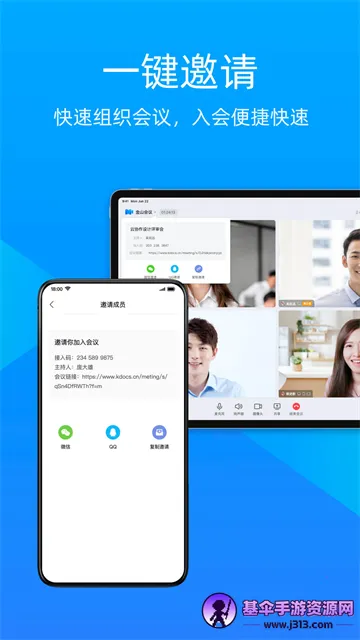 金山会议最新手机版是一款云会议软件,支持多平台参会。可共享文件、多人语音视频会议、同步查看编辑文档。有主持人、演示者、听众三级权限管控,入会方便,功能强大,让远程会议轻松高效。
