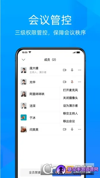 4. 拥有强大的会管会控能力,主持人可有序管理会议,确保会议顺利进行。