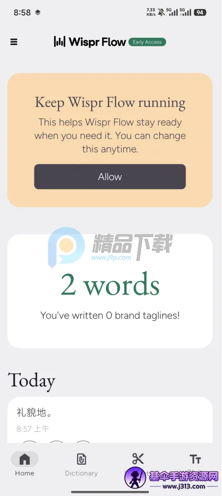 Wispr Flow安卓版是一款备受瞩目的语音转文字工具。它依托高精度语音识别技术,能清晰捕捉日常口语并精准转化为规范文本。其核心差异化在于内建的AI实时编辑能力,能自动过滤冗余、纠错与重组逻辑、进行上下文排版。全局悬浮按钮的交互方式很便捷,在任何App中点击就能输入。目前支持超100种语言,还可自定义词典等。虽在嘈杂环境中偶尔有拾音错误,但整体体验升级明显,对于有高频长文本输入需求的专业人群来说是个不错的选择。**b style="color:red;font-weight: bolder;">值得一试**。