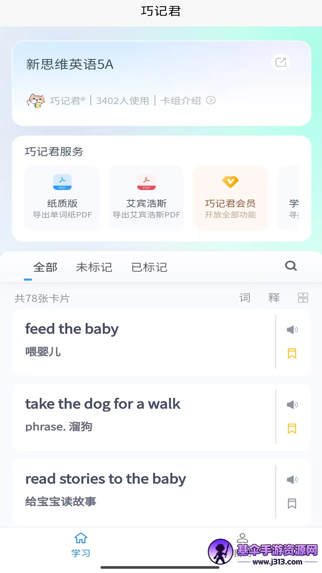 巧记君是专注英语单词记忆与发音学习的实用工具,将科学记忆与趣味学习结合。提供多种学习模式,从发音、拼写、理解多维度强化记忆。有丰富学习专区、服务及记录展示,使用方便,助用户告别死记硬背轻松学单词。