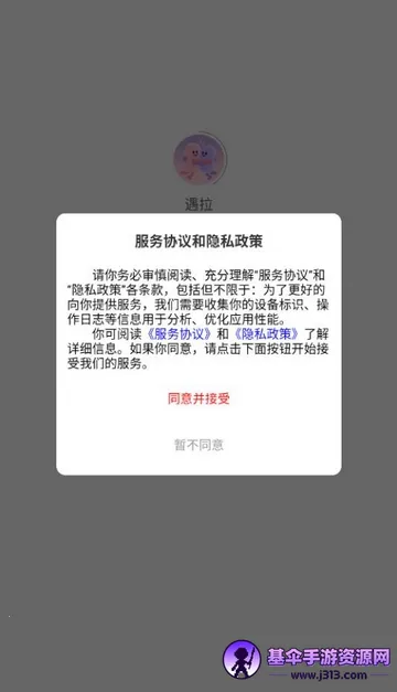 1、打开遇拉app,点击同意隐私政策