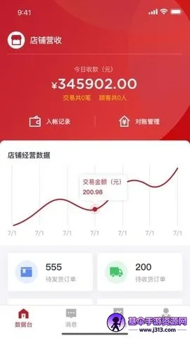 3. 数据统计分析:将店铺近期经营数据全部统计,通过数据图表分析经营趋势,展示订单数、收款数额及售后订单量等基本经营指标。