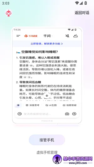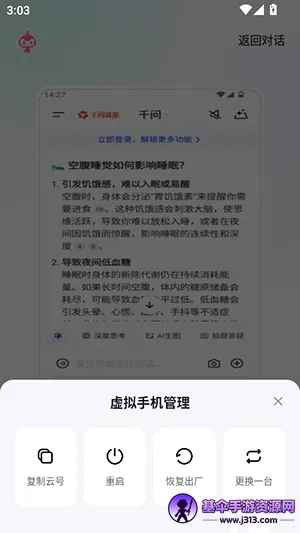 它的AI智能助手功能强大,能快速精准地回答各种问题,无论是实时答疑、百科查询还是生活咨询,都能轻松应对。虚拟手机管理也很便捷,可以一键恢复出厂设置并同步数据至云端,方便测试和多账号管理。