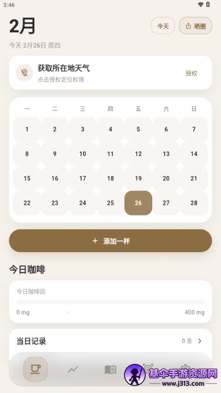 3. 功能丰富:具备记录咖啡、统计分析、日历视图、咖啡日记、所在地天气等众多功能,能帮助直观管理咖啡摄入。