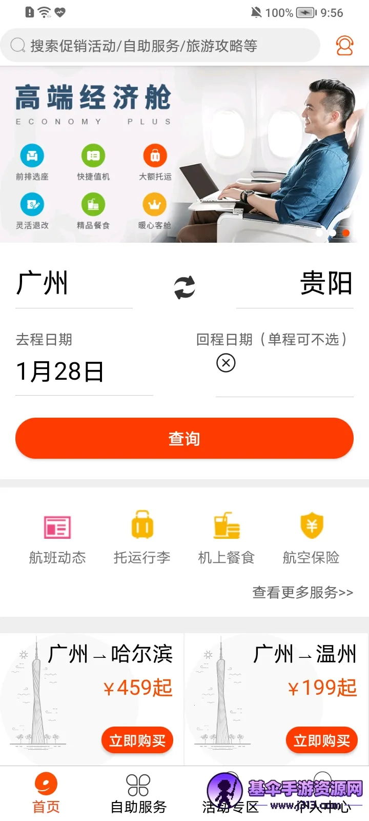 3. 活动丰富:设有活动专区,提供特价机票服务,满足不同出行需求,还有首航起飞抢9元机票活动。