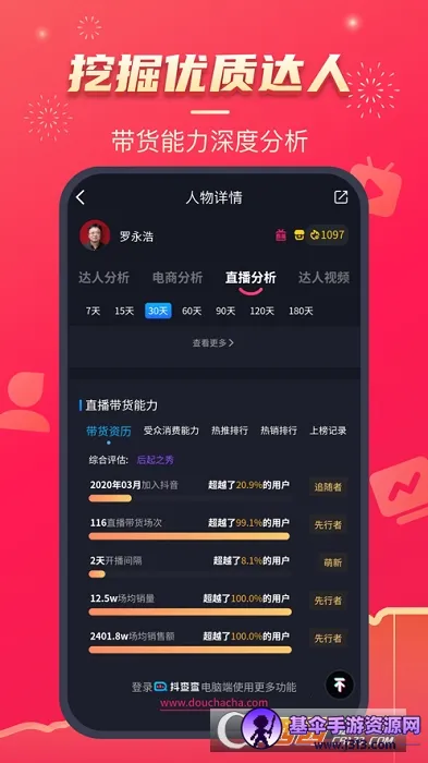 3. 功能丰富助力多样:能进行直播、电商、达人、视频创意等分析,提供各类榜单,方便定位账号、找合作对象、创作优质内容等。