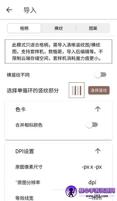 4、选择竖纹或者横纹等图案,调整色卡、DPI设置。