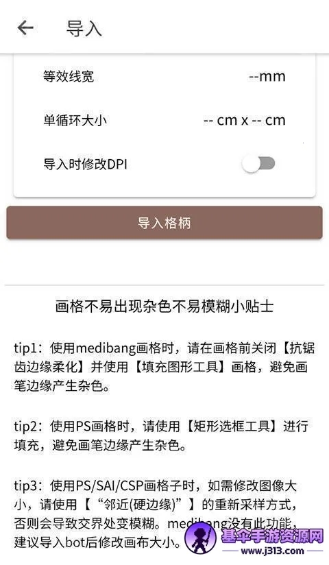 5、确认原图DPI填写无误,然后滑到下方,点击“导入格柄”即可。