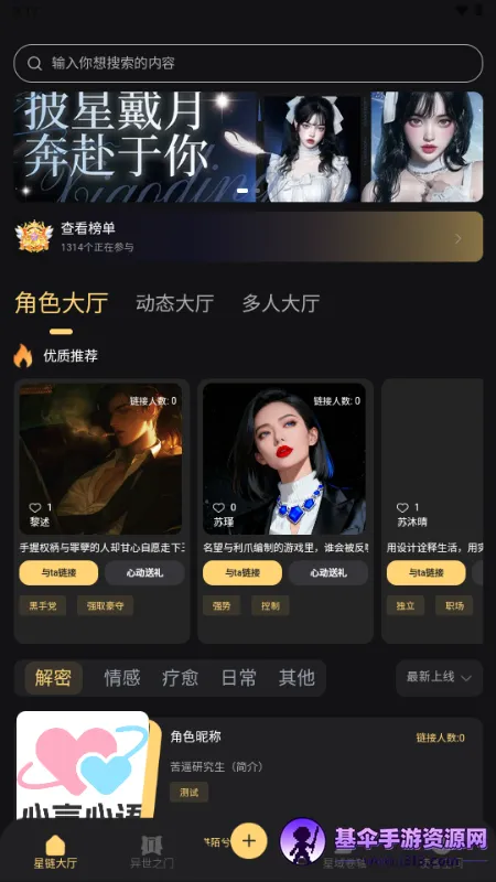 构建三大核心模块,形成完整陪伴体系。星恋大厅汇集多样虚拟角色,支持单人互动与多人社交,轻松找专属伙伴。