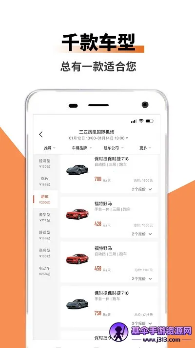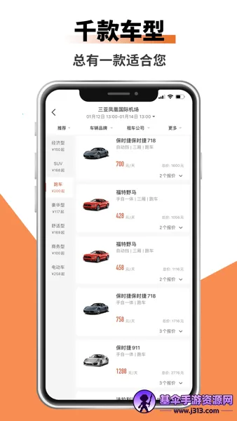 2. 车型丰富任你选:拥有千款车型,涵盖拉风豪车、商务车、经济舒适型车、SUV、新能源车、房车等,能满足短租、长租、商务行、自驾游、周边游、限行代步等多种用车需求。
