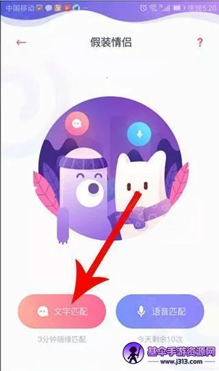 2、进入到"假装情侣"界面,点击"文字匹配"按钮。