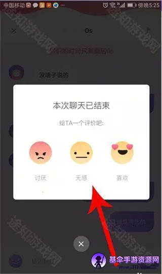 5、倒计时结束后,你与对方的对话窗口便会关闭,打开评价弹窗,点击列出的选项即可。