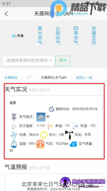 4、查看当前的天气实况