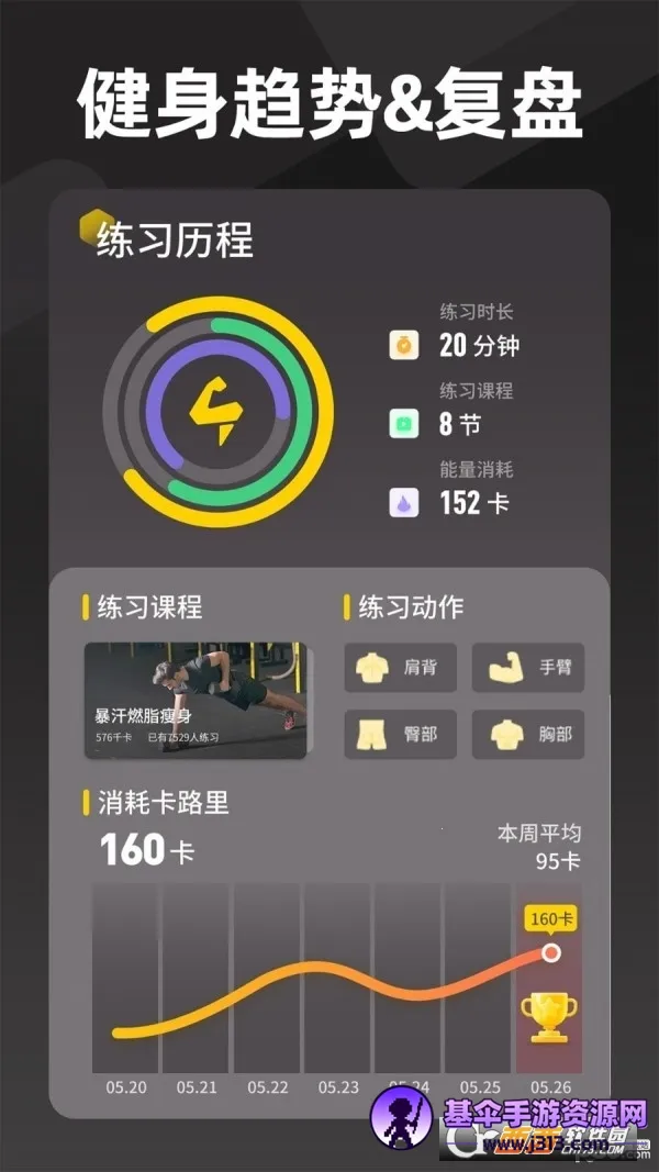 4. 数据见证:跟踪健身数据,复盘健身趋势,让健身成果可视化,增强健身动力,助力养成健身习惯,见证身体变化。