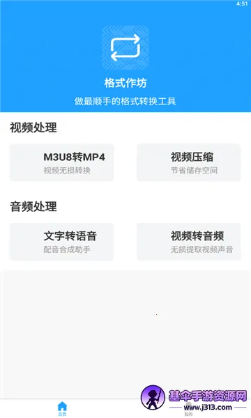 格式作坊是一款手机媒体格式转换工具,界面直观,功能丰富。支持M3U8转MP4、视频音频格式转换、视频配乐、音频无损提取、视频压缩等。能满足各场景格式转换需求,操作简单,免费且高效。