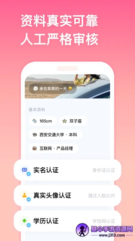 1、实名认证,全部用户身份证实名审核,学历职业收入资料详细靠谱,杜绝照骗网骗,保障交友安全真实可靠。