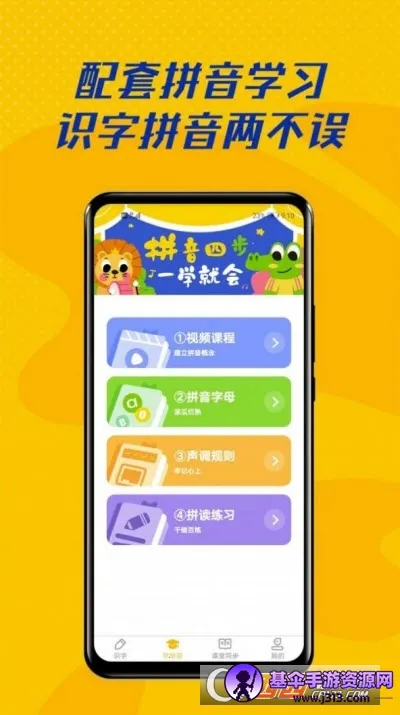 2. 多样学习方式:有汉字学习、课本朗读、汉字语音、视频课程、拼音字母等功能,还有图文并茂、标准语音朗读模式,多个主题学习板块,帮助孩子建立拼音概念,掌握正确发音,专心学习。