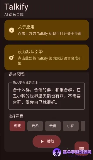 Talkify是智能现代化TTS连接器,整合多云端顶尖大模型,提供高质量拟人语音合成。有丰富音色,可无缝接入阅读功能,支持中文等,适配国内需求,基础功能可离线,仅安卓可用,不断更新优化。