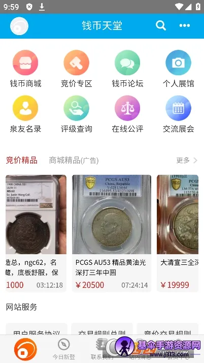 3. 活跃交易专区:钱币竞价拍卖专区和钱币商城人气活跃、成交量高,满足商家售卖与泉友购买需求。