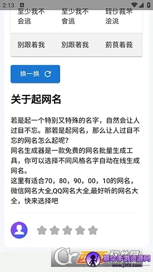 3. 操作简单便捷,能依据需求生成网名,不满意可重新生成,还能按喜好或浏览习惯获推荐。操作简便