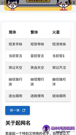 想拥有一个独一无二的网名?随机网名软件就能帮你轻松搞定!当你不喜欢现有的网名,或者想换个新网名时,它就是你的绝佳选择。在这款软件里,你可以随心所欲地设置各种需求,然后生成只属于自己的网名,而且全程免费哦!