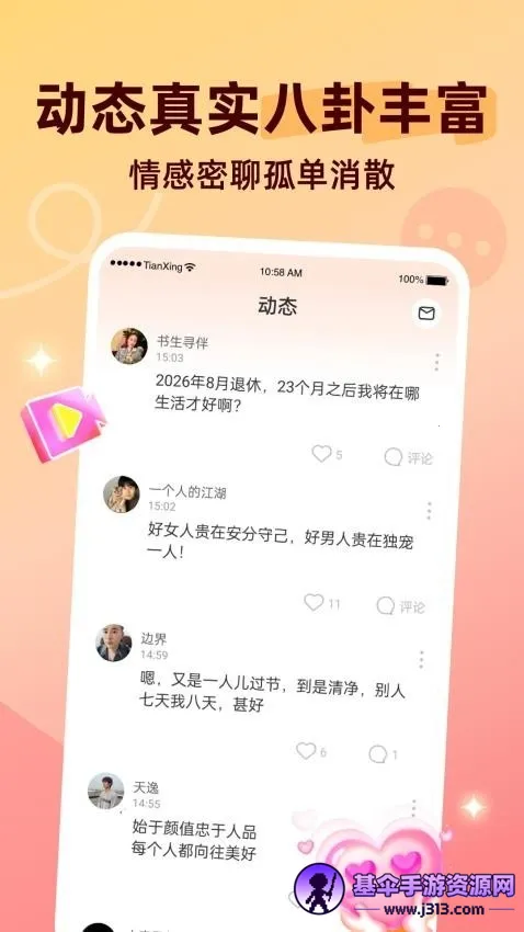 甜杏视频交友软件好不好呢?它有不少亮点。平台内容调性统一,专注温暖治愈正能量短视频,社区氛围友好和谐。视频制作精良,画面清新配乐悦耳,观看体验舒适放松。用户能自由筛选感兴趣的异性,筛选维度贴合真实社交需求。还支持免费观看、任意点播和下载缓存视频。而且能畅聊互动,增进情感交流,告别单身,邂逅心动。通过交友动态查看信息,在消息中与对方交流。整体来说,是一款不错的交友软件。