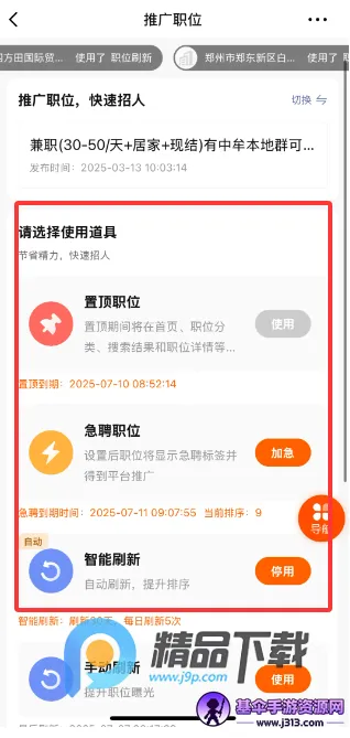 2、推广已发布的职位可以使用平台推流